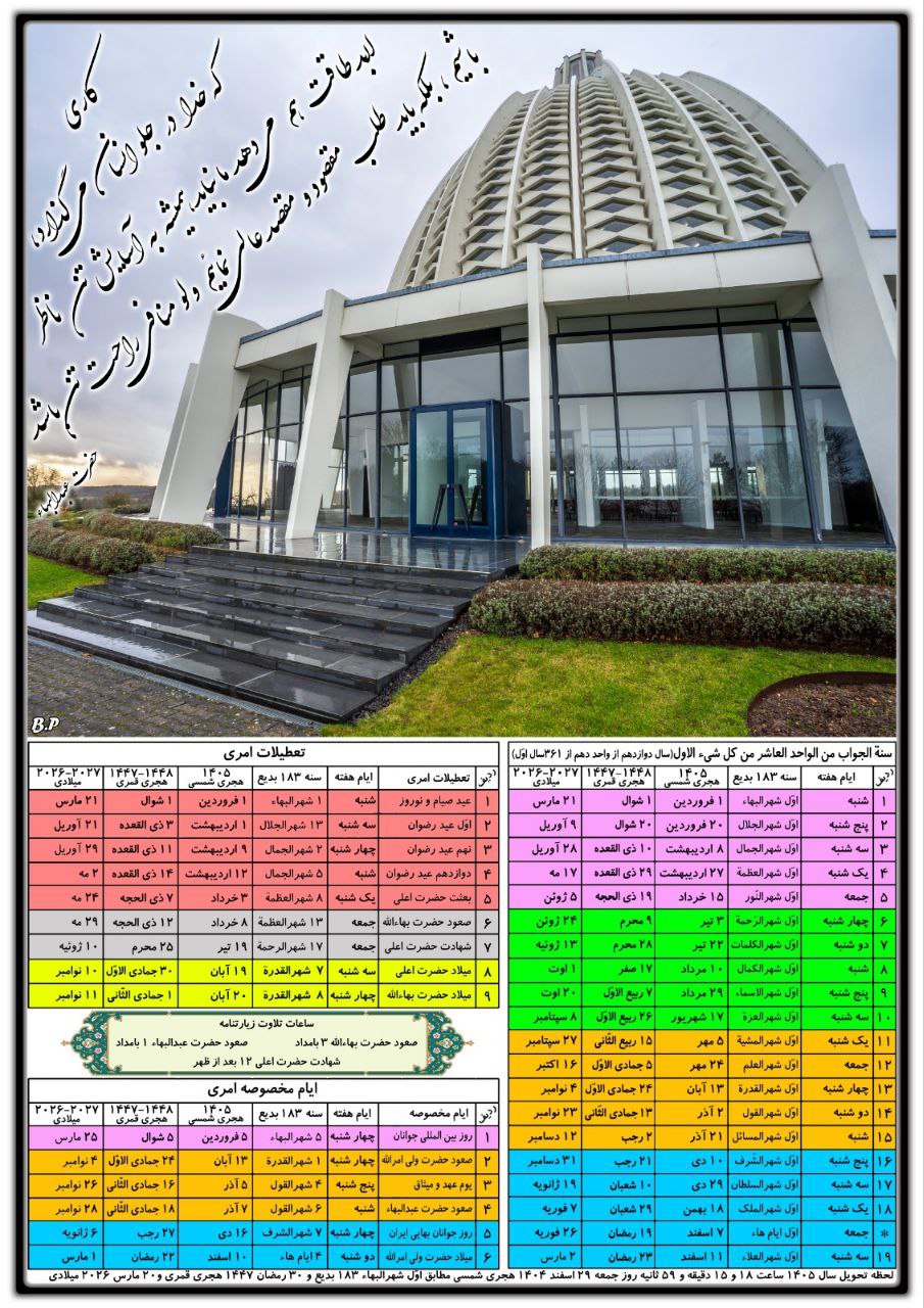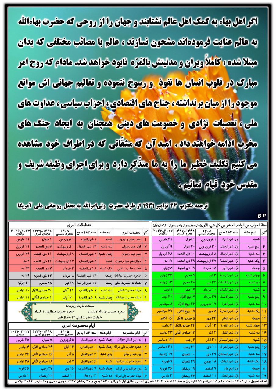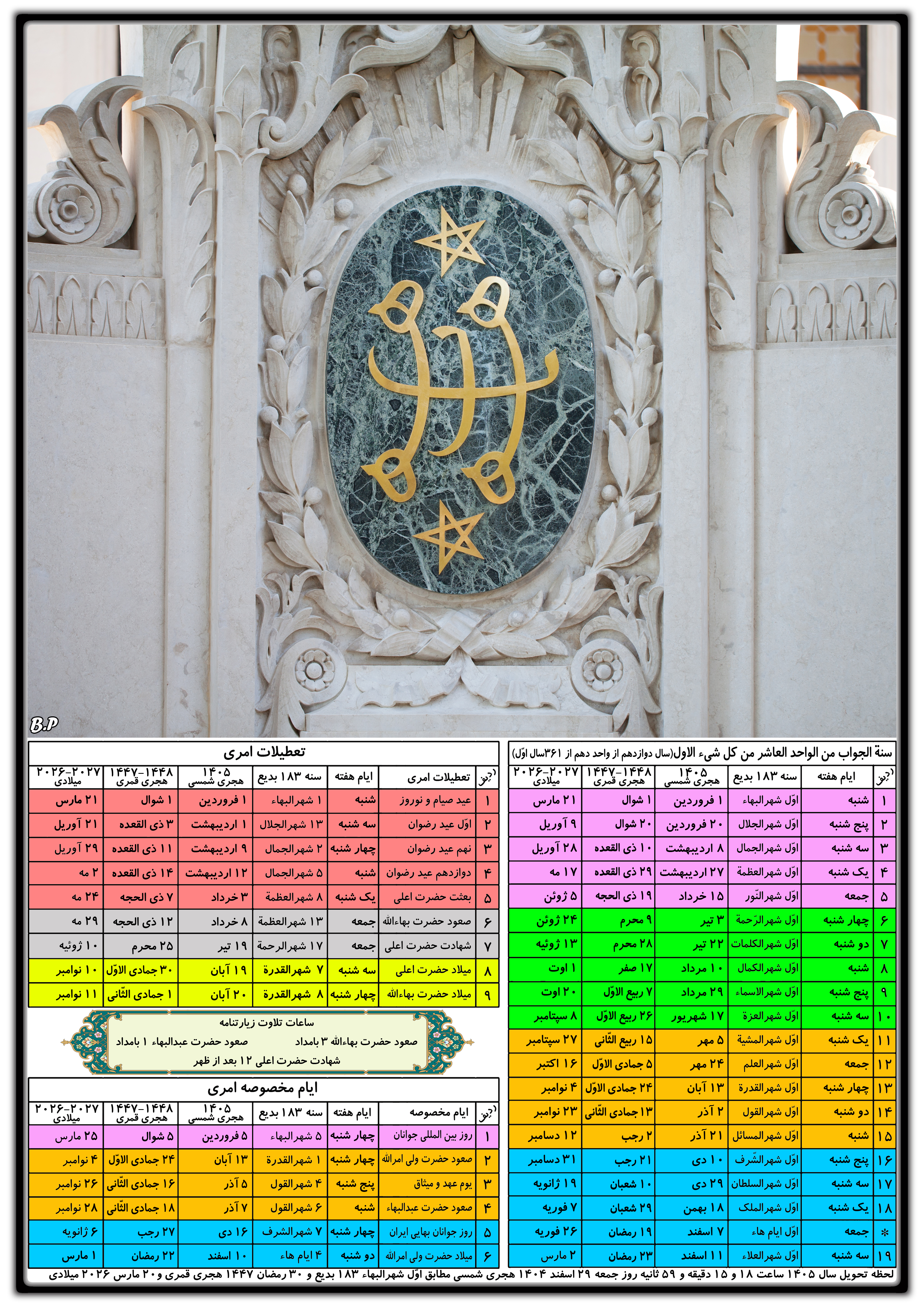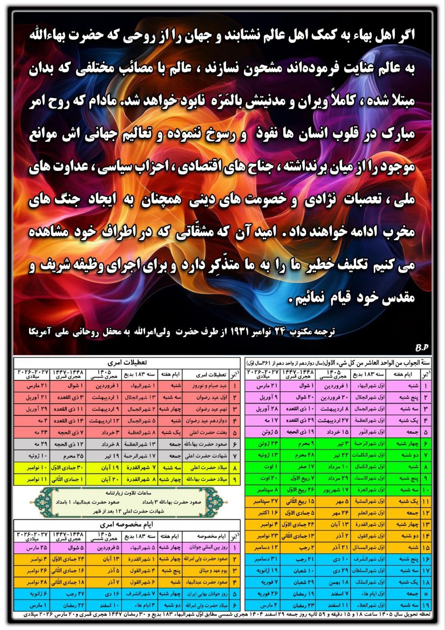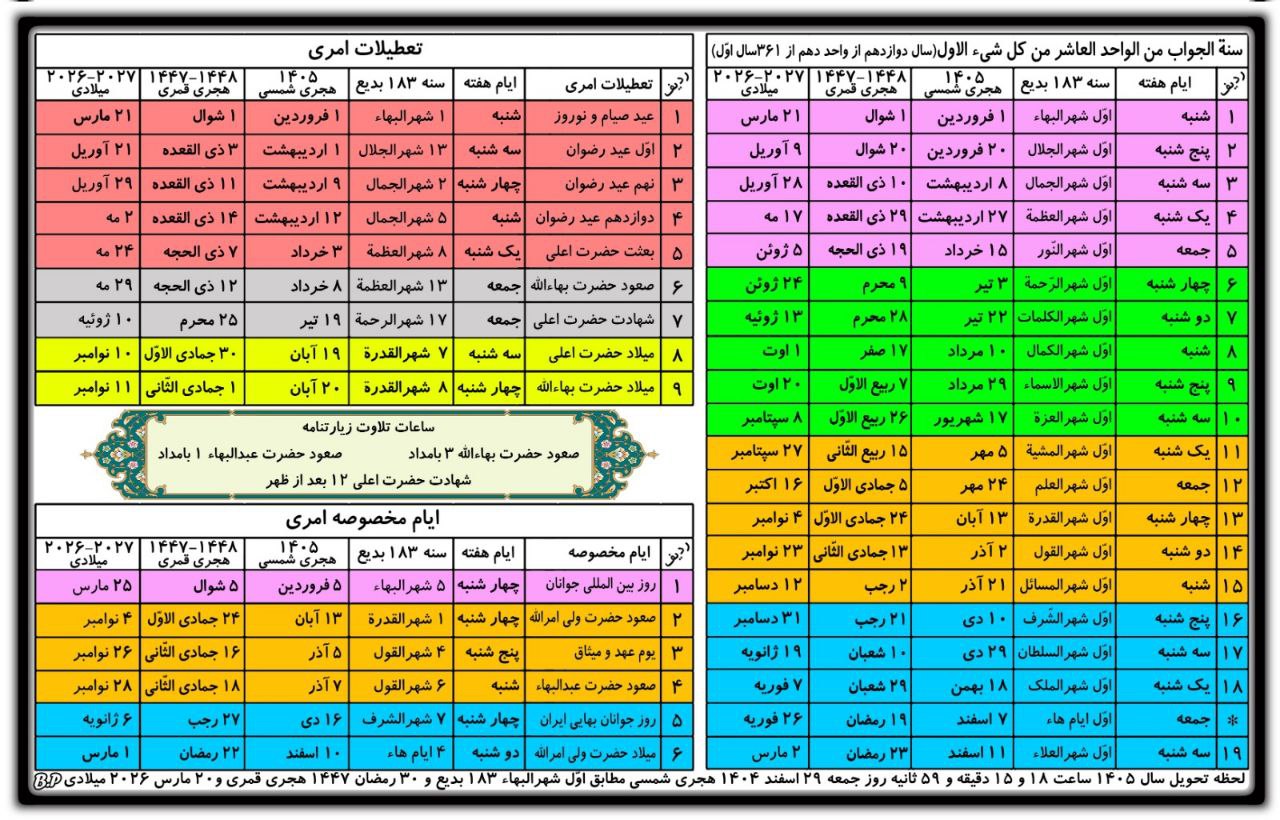 تقویم بهائی ۱۸۳ بدیع مطابق با ۱۴۰۵ شمسی